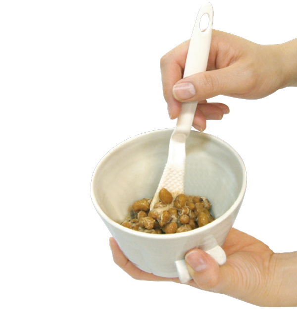 今ある納豆専用器の形状は、コーヒーカップや急須のような把手状のものばかりでした。